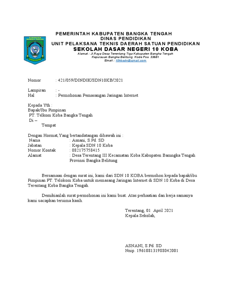 Saya ingin membuat permohonan pemasangan cable fibre optic di kawasan. Demikianlah surat permohonan ini kami buat. Pdf permohonan pemasangan jaringan internet irwansyah telkom di tempat dengan hormat bersamaan dengan surat ini kami dari smaismk yapim taruna bandar.